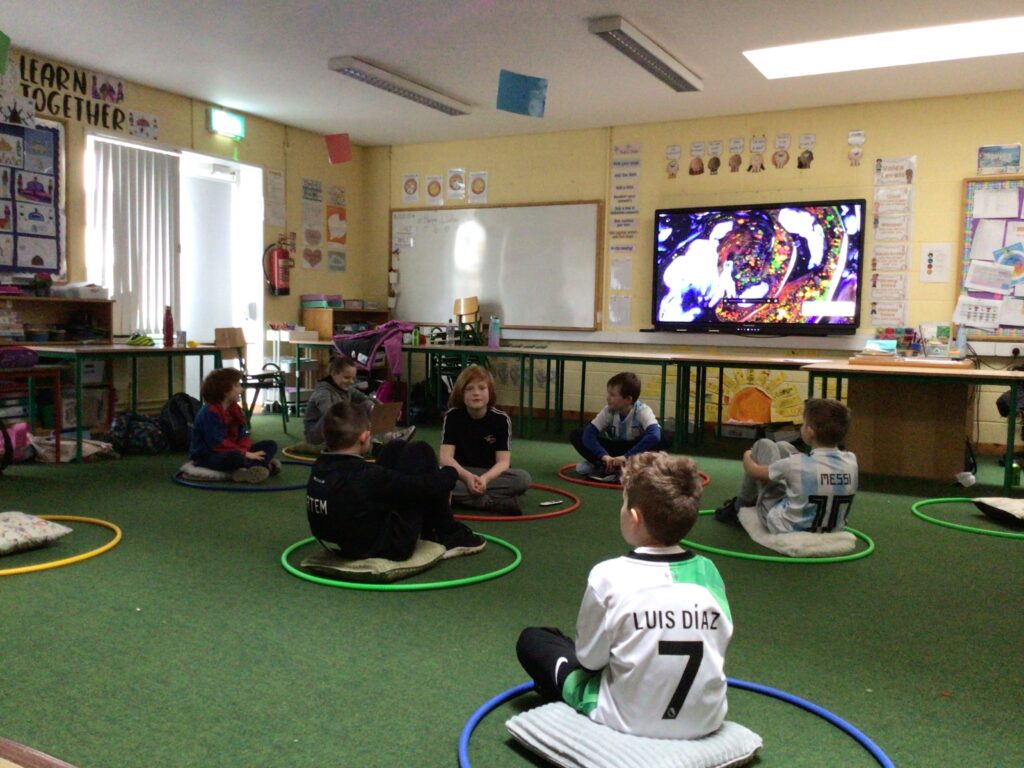 The teachers, Caitriona, Hazel, Nicola and Olwyn listened to and encouraged the children to direct and plan today’s assembly.